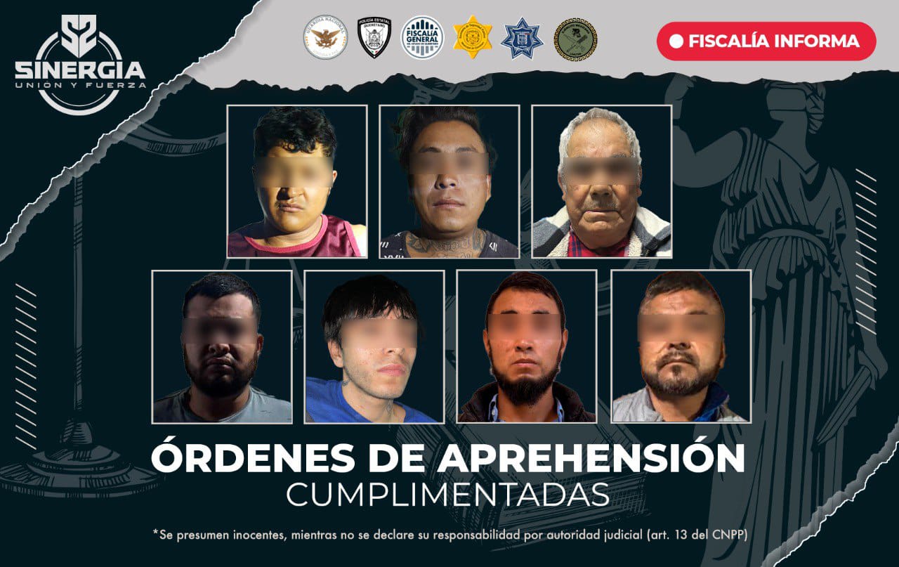 La Fiscalía General del Estado realizó la detención de 13 personas durante cateos realizados en 18 domicilios de los municipios de Querétaro y El Marqués, en el marco de la estrategia Sinergia, en coordinación con las Policías Municipales de la capital y El Marqués, Secretaría de Seguridad Ciudadana, Guardia Nacional y Ejército.