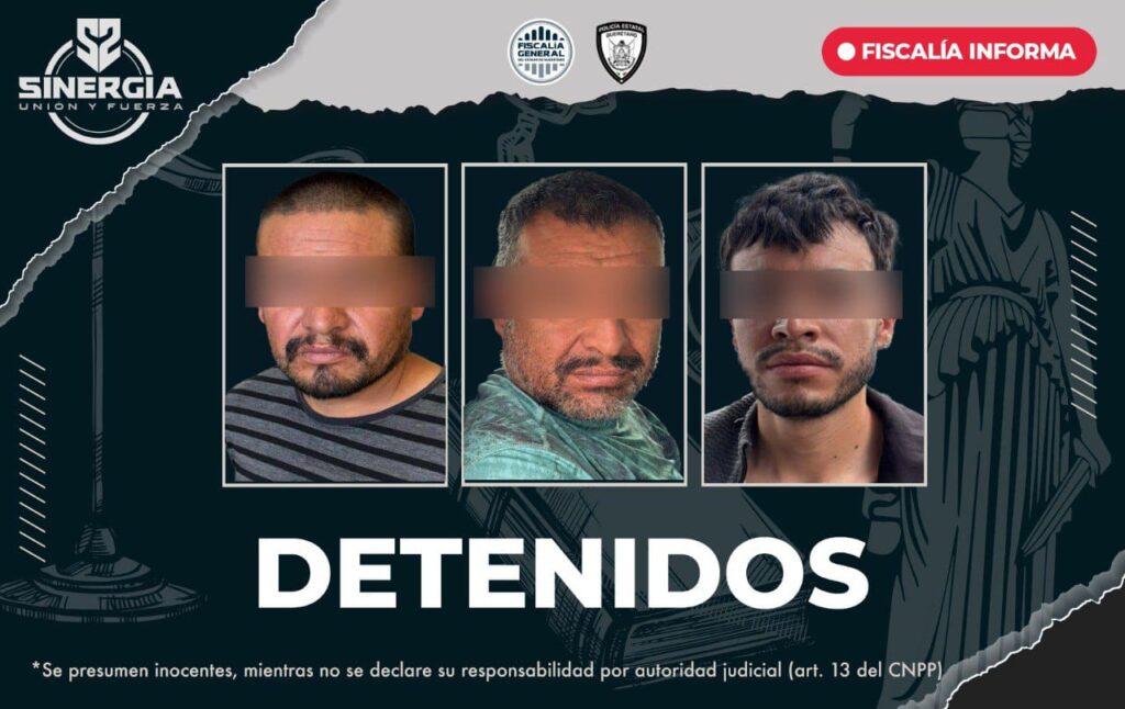 Durante las diligencias fueron detenidas tres personas del sexo masculino que se encontraban en el inmueble, quienes fueron puestas a disposición de la autoridad competente para continuar con las investigaciones correspondientes.