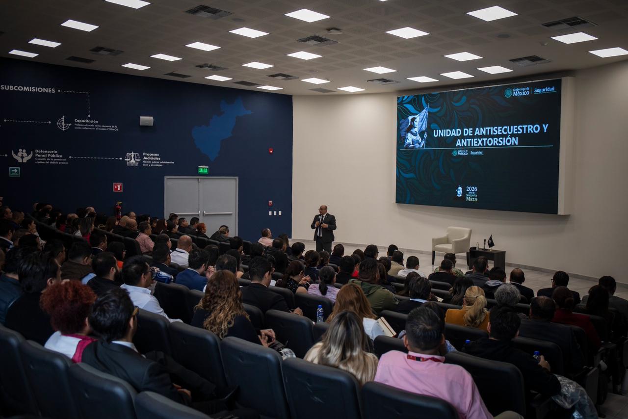 La ponencia estuvo a cargo del Licenciado Mario Bazán Miranda, Director de Área de Atención a Víctimas de Secuestro y Extorsión de la Unidad Antisecuestro y Antiextorsión de la Secretaría de Seguridad y Protección Ciudadana, quien abordó los principales mecanismos utilizados en este tipo de delitos, así como recomendaciones para su identificación, prevención y atención oportuna.
