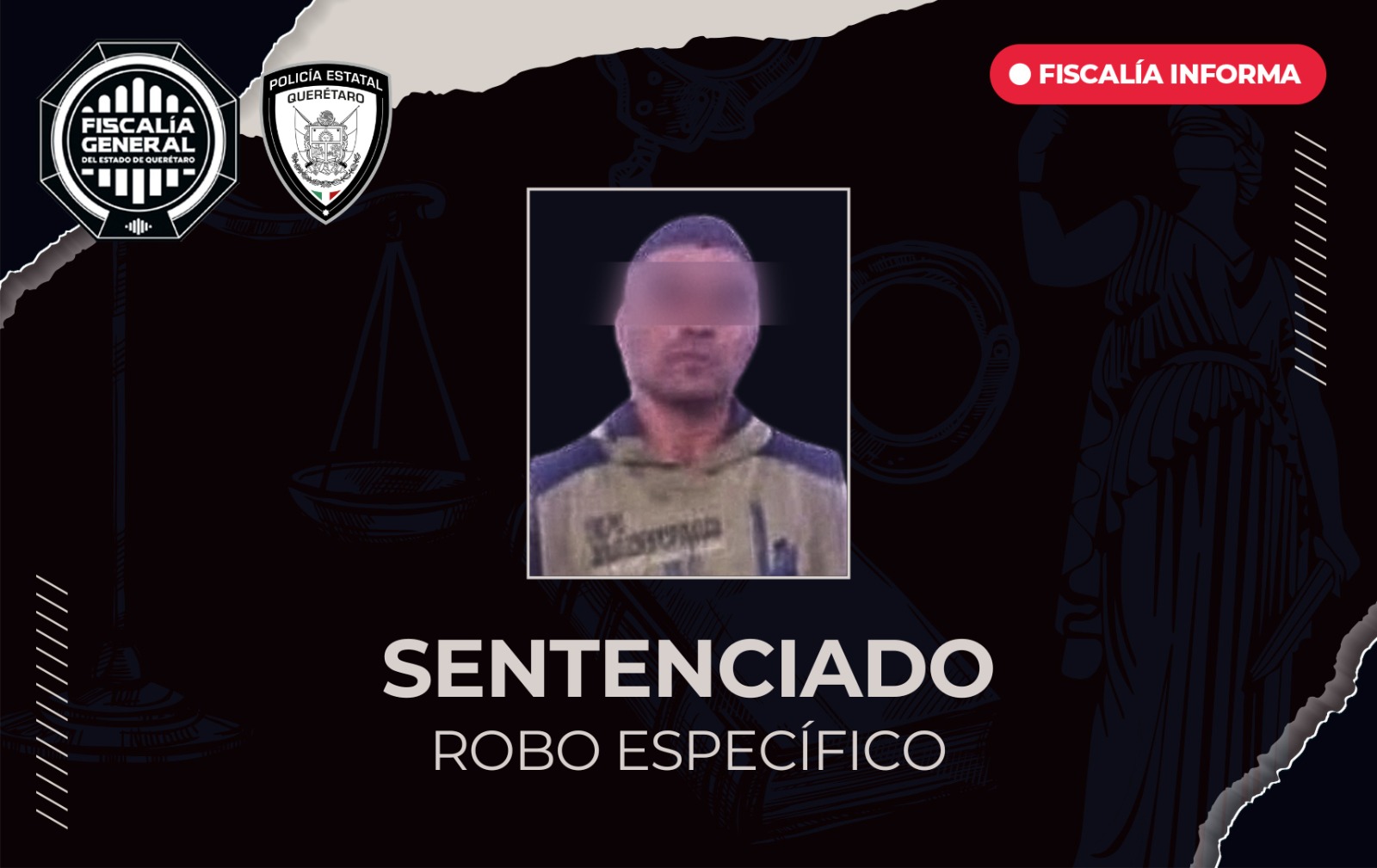 La Fiscalía General del estado de Querétaro logro la Sentencia de Ricardo “N”, por su responsabilidad en el delito de robo específico a comercio, hechos ocurridos en agosto de 2025.