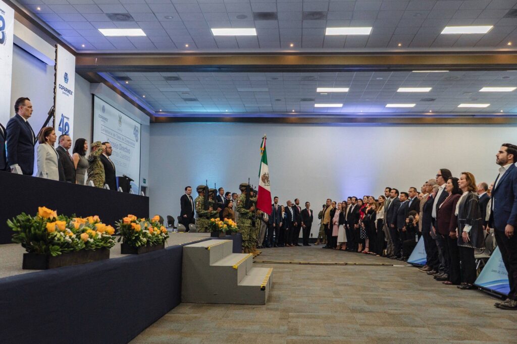 El Fiscal General del Estado de Querétaro, Víctor Antonio De Jesús Hernández, asistió a la ceremonia de toma de compromiso del Consejo Directivo de COPARMEX Querétaro, evento en el que también estuvo presente el Gobernador del estado, Mauricio Kuri González, y que marca el inicio de una nueva etapa de liderazgo dentro del organismo empresarial, reafirmando el compromiso del sector privado con el desarrollo económico, la ética empresarial y el fortalecimiento del Estado de Derecho. Durante el acto, Beatriz Hernández Rojas, presidenta de COPARMEX Querétaro, así como el Director Nacional del organismo ,Juan José Sierra Álvarez, quienes destacaron la importancia de fortalecer la colaboración entre el sector empresarial y las autoridades para impulsar condiciones de seguridad, certeza jurídica y competitividad en la entidad. En este contexto, se resaltó que el trabajo en Sinergia entre instituciones y sociedad contribuye a consolidar un entorno de legalidad, confianza y desarrollo para Querétaro.